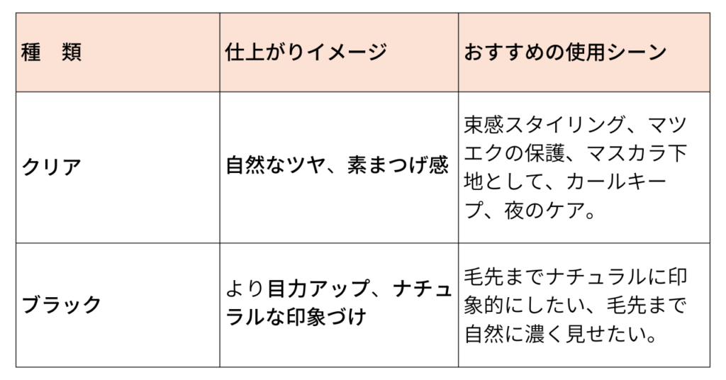 - ブラック: 毛先までくっきり見せ、ナチュラルな目力を出したい時に